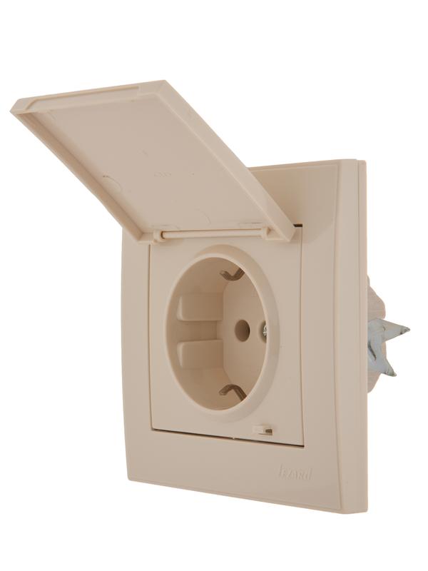 Розетка 1-м СП Rain с заземл. с защ. крышкой керамика крем. LEZARD 703-0303-123