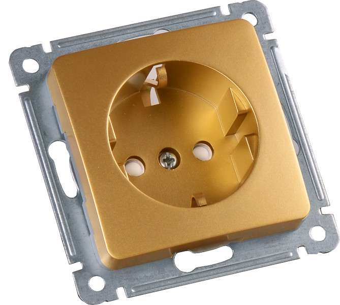 Розетка 1-м СП с заземл. защ. шторки механизм зол. HEGEL РС16-412-07