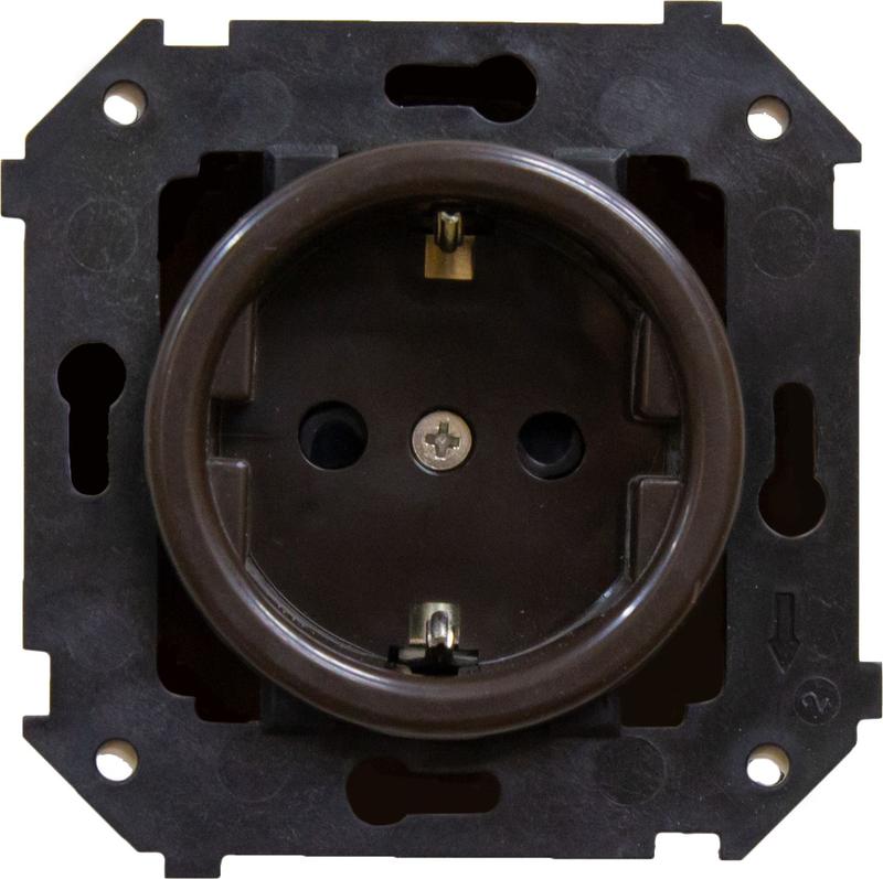 Розетка 1-м СП Шедель 16А ретро с заземл. ABS-пластик механизм коричн. Bironi B3-101-22