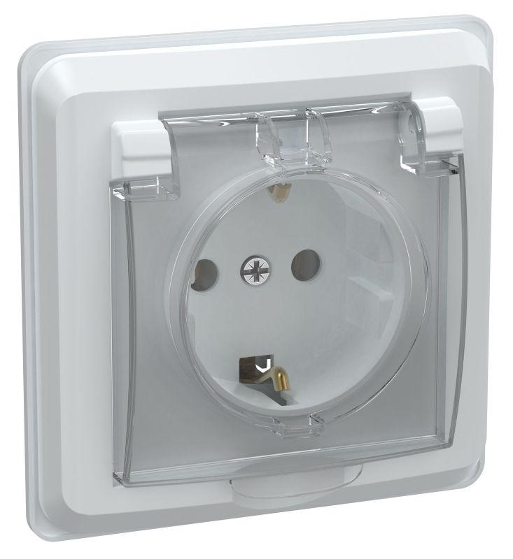 Розетка 1-м СП Вега РСбш10-3-ВБ 16А IP44 с заземл. защ. шторки с крышкой бел. IEK ERV16-K01-16-DM