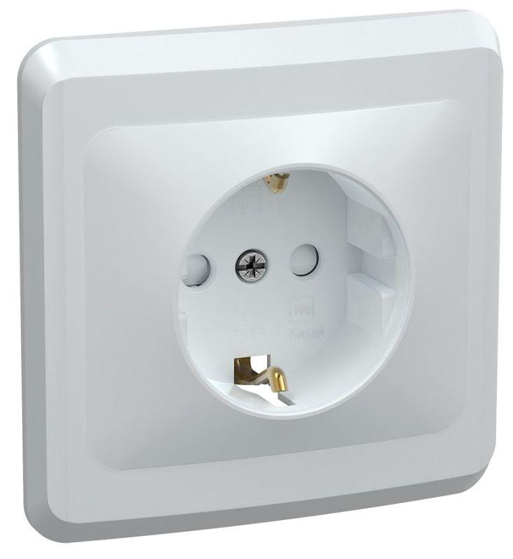 Розетка 1-м СП Вега РСш10-3-ВБ с заземл. контактом и защ. штор 16А бел. IEK ERV14-K01-16-DM