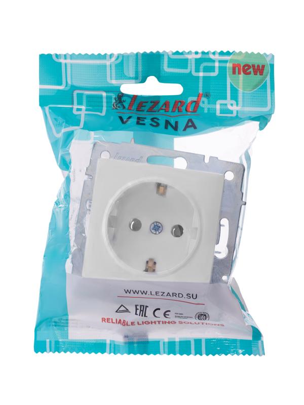 Розетка 1-м СП Vesna с заземл. ПБТ механизм бел. LEZARD 742-0288-122B