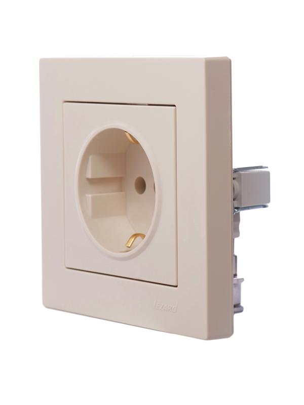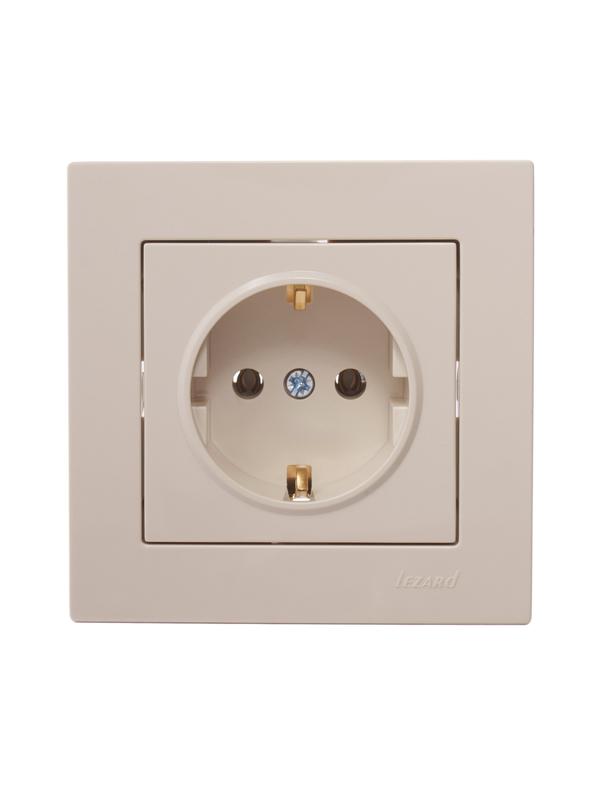 Розетка 1-м СП Vesna с заземл. ПБТ механизм крем. LEZARD 742-0388-122B