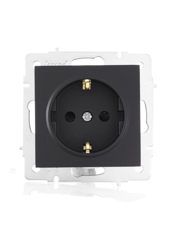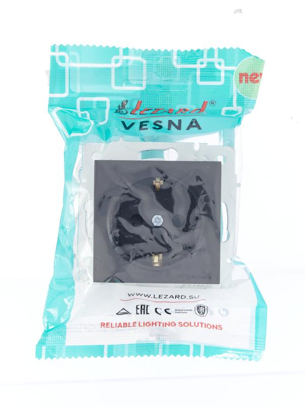 Розетка 1-м СП Vesna с заземл. защ. шторки ПБТ механизм черн. бархат LEZARD 742-4288-124B