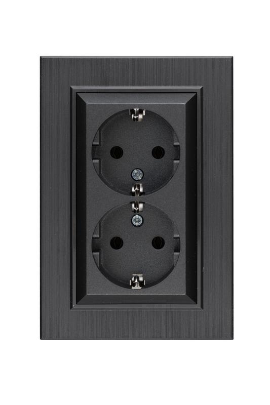 Розетка 2-я Karea LINE STAR с заземл. дым. металлик Makel 86050082