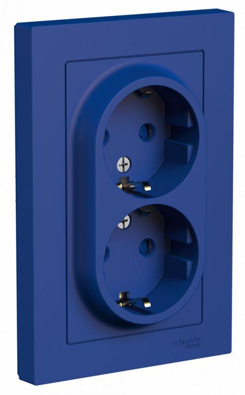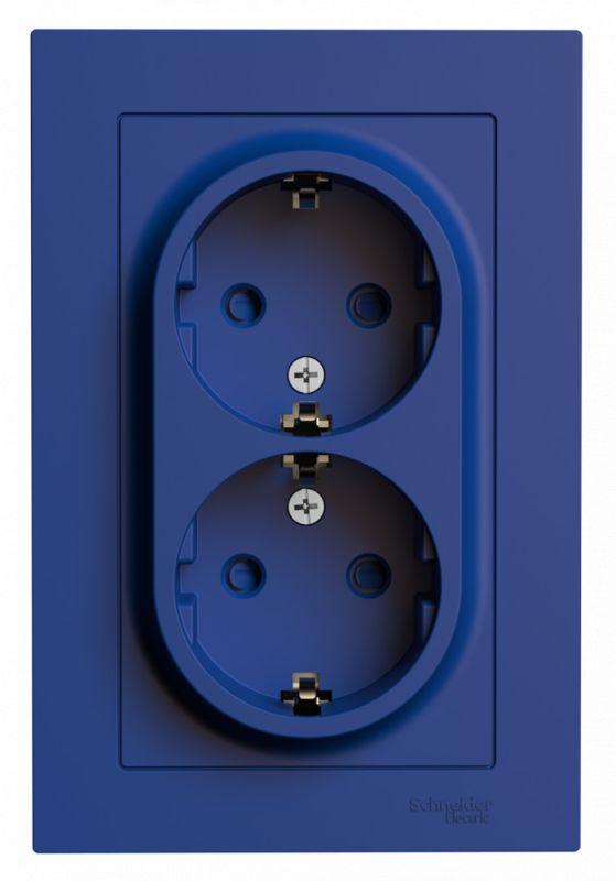 Розетка двойная Systeme Electric (ранее Schneider Electric) серии AtlasDesign (в сборе, цвет аквамарин) с заземлением и шторками подходит для сетей 250 В, на ток 16 А. - Заземляющий контакт обеспечивает дополнительную защиту от удара электрическим током. - Лицевые детали из качественного ABS-пластика, устойчивого к царапинам и УФ-излучению. - Двойная розетка позволяет подключить два устройства в одном месте. - Изделие поставляется в комплекте с рамкой того же цвета.
