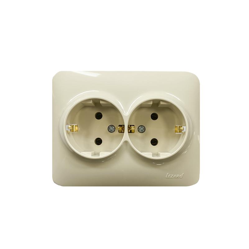 Розетка 2-м Karina Life с заземл. ПБТ крем. LEZARD 708-0300-127B