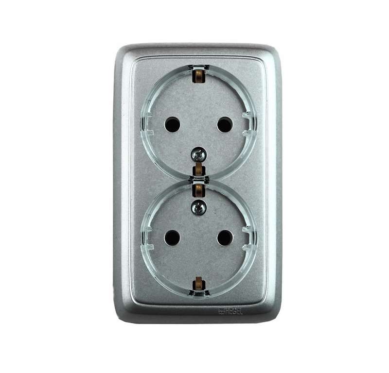 Розетка 2-м ОП Альфа 16А IP20 250В с заземл. с изолир. пластиной (стакан) серебр. HEGEL РА16-183-06