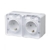 Розетка двойная с заземлением со шторками для открытого монтажа, 16А, 250В. Степень защиты IP:54, Степень защиты IK: IK08. Продукция AtlasDesign Profi54 созданы специально для тех мест, где требуется повышенная защита от влаги и пыли. Уютная веранда в загородном доме, уличное кафе, любимый гараж или мастерская – выключатели и розетки будут обеспечивать надежную защиту и радовать глаз современным дизайном. Универсальный белый цвет гармонично впишется в любую обстановку.