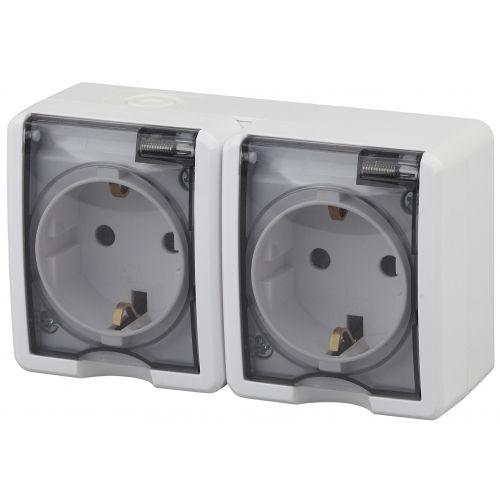 Розетка двойная IP54 2-я со шторкамисерии Эра Эксперт открытой установки цвет белый 11-2404-01. Номинальные характеристики 16А 250В . Устройство выполнено из качественного поликарбоната, оснащёно уникальными винтовыми клеммами ЭКСПЕРТ для максимально качественного зажима кабеля в механизме.