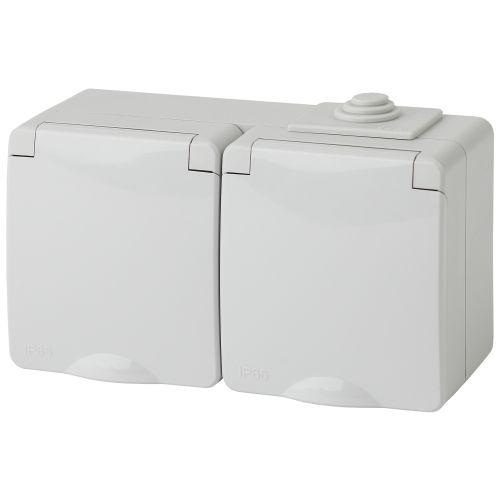 Розетка двойная горизонтальная IP65 с крышкой серии Эра Эксперт открытой установки цвет белый 11-2603-03. Номинальные характеристики 16А 250В. Устройство выполнено из качественного поликарбоната, оснащёно уникальными винтовыми клеммами ЭКСПЕРТ для максимально качественного зажима кабеля в механизме.