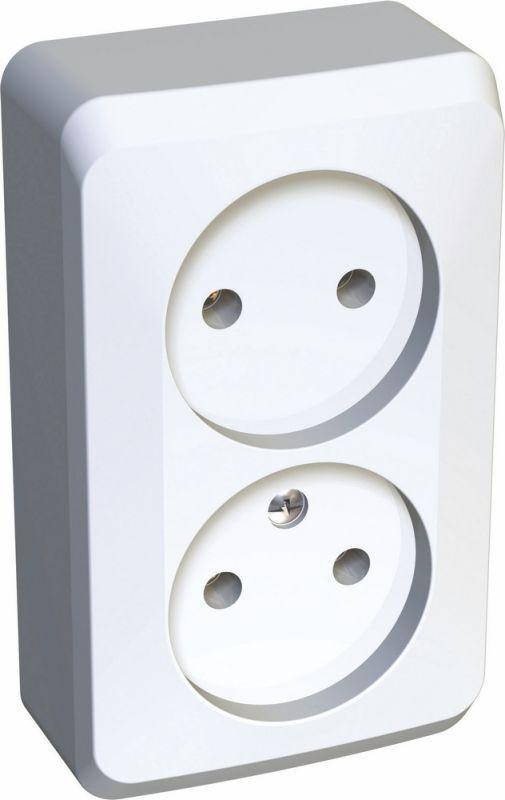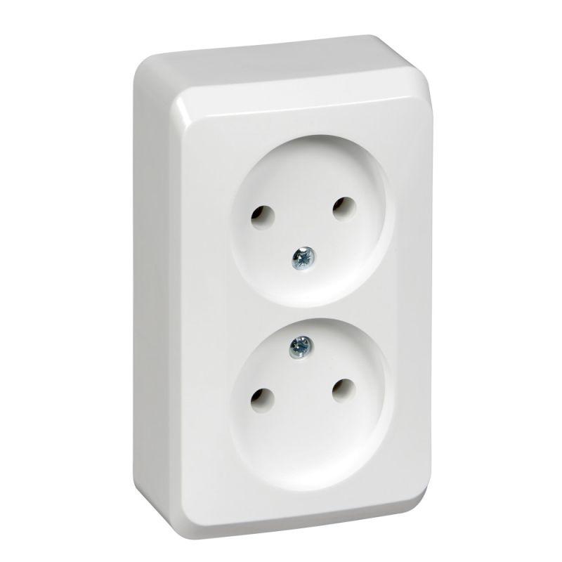 Розетка Systeme Electric (ранее Schneider Electric) ЭТЮД (белый, открытой установки) двухместная, без шторок и заземления предназначена для применения в сетях до 250В, на ток до 16А. Двухместная розетка позволяет подключить два устройства в одном месте. Она проста в установке и удобна в применении. Сделано в России.