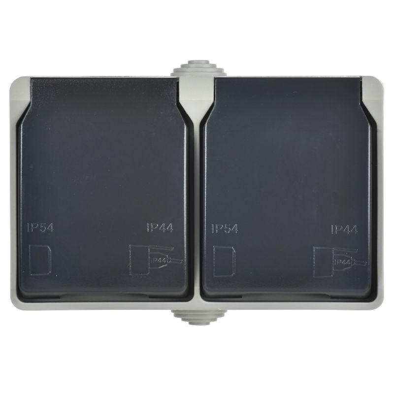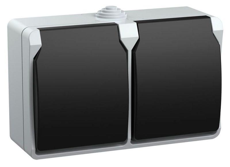Розетка 2-м ОП Форс РСб22-3-ФСр 16А IP54 с заземл. с крышкой сер. IEK ERS22-K03-16-54-DC