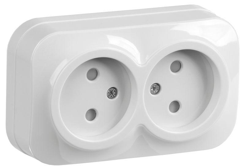 Розетка 2-м ОП GLORY РСш22-2-ХБ 10А без заземл. защ. шторки бел. IEK ERH23-K01-10