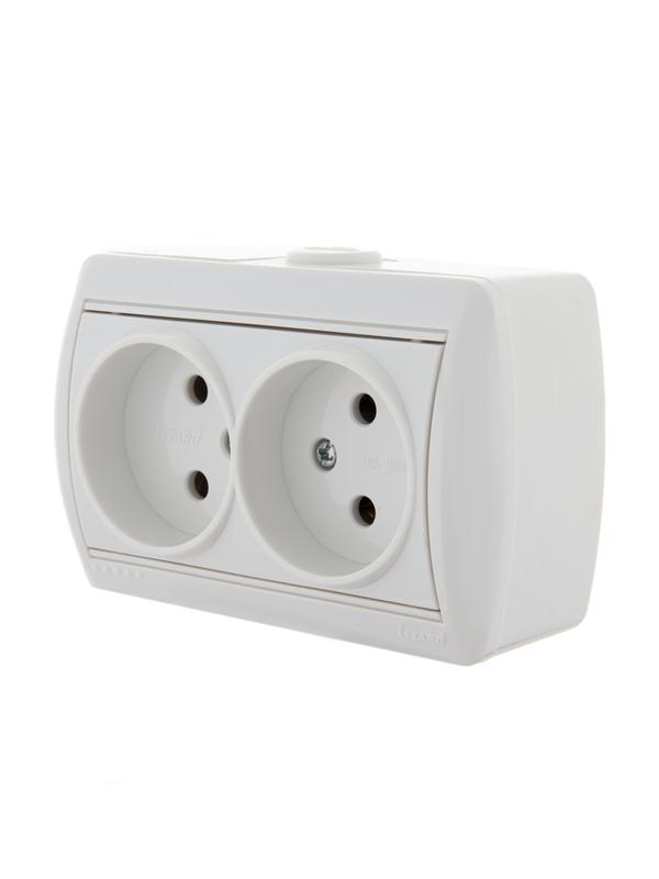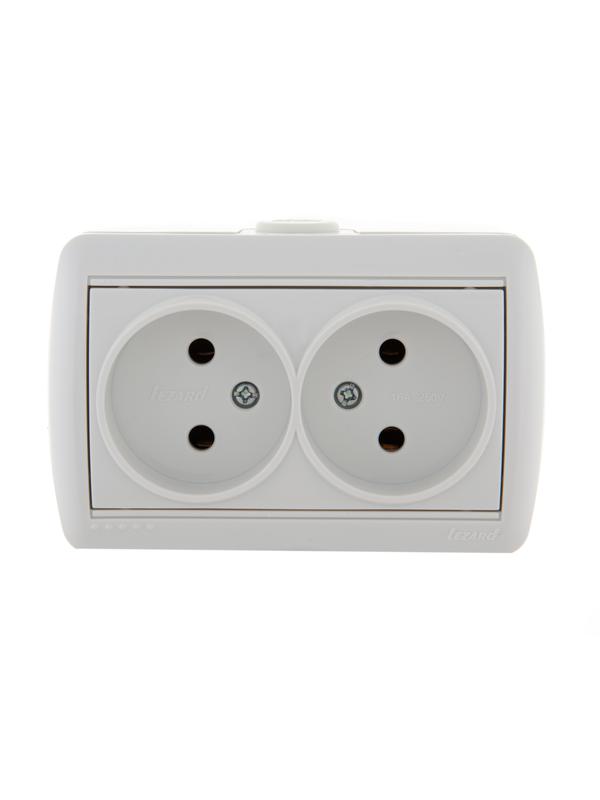 Розетка 2-м ОП Nata 16А IP20 без заземл. керамика бел. LEZARD 710-0200-128
