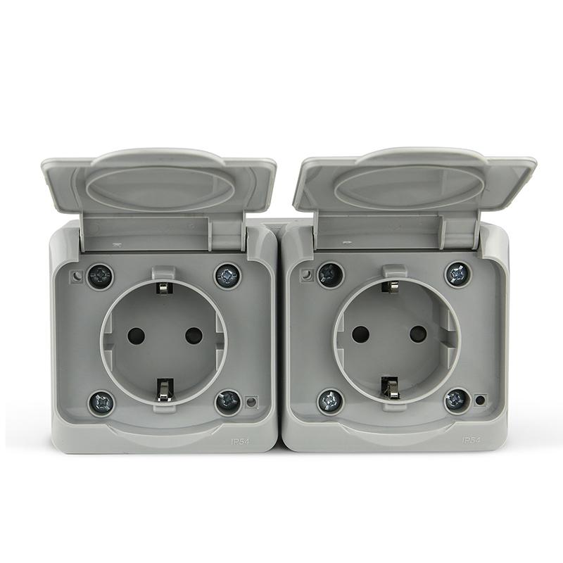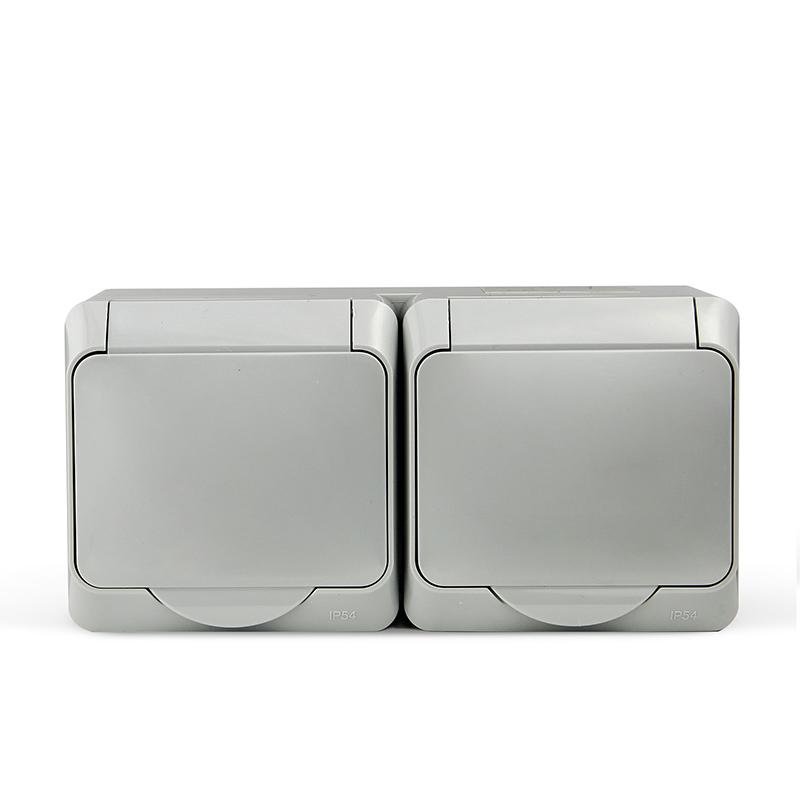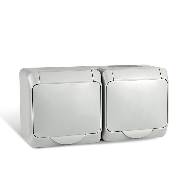 Розетка 2-м ОП Nix 16А IP54 250В с заземл. с крышкой сер. TOKOV ELECTRIC TKE-NX-R2Z-C06-IP54