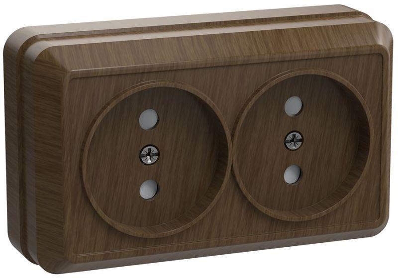 Розетка 2-м ОП Октава 10А IP20 без заземл. дуб IEK ERO20-K04-10-DC