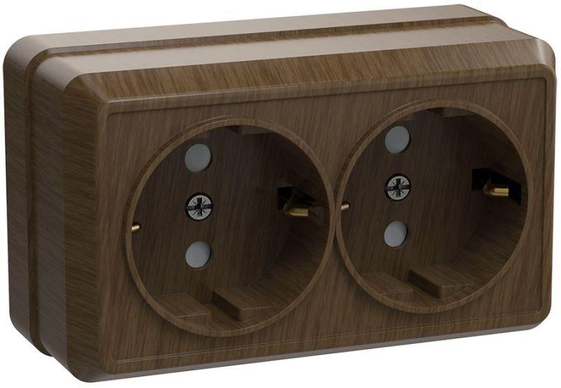 Розетка 2-м ОП Октава РС22-3-ОД 16А IP20 с заземл. дуб IEK ERO21-K04-16-DC