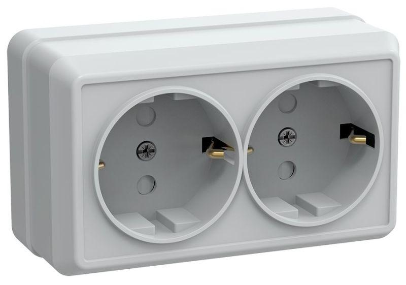 Розетка 2-м ОП Октава РСш22-3-ОБ 16А IP20 с заземл. защ. шторки бел. IEK ERO24-K01-16-DC