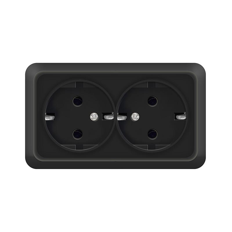 Розетка 2-м ОП Олимп 16А IP20 с заземл. черн. Universal 2216