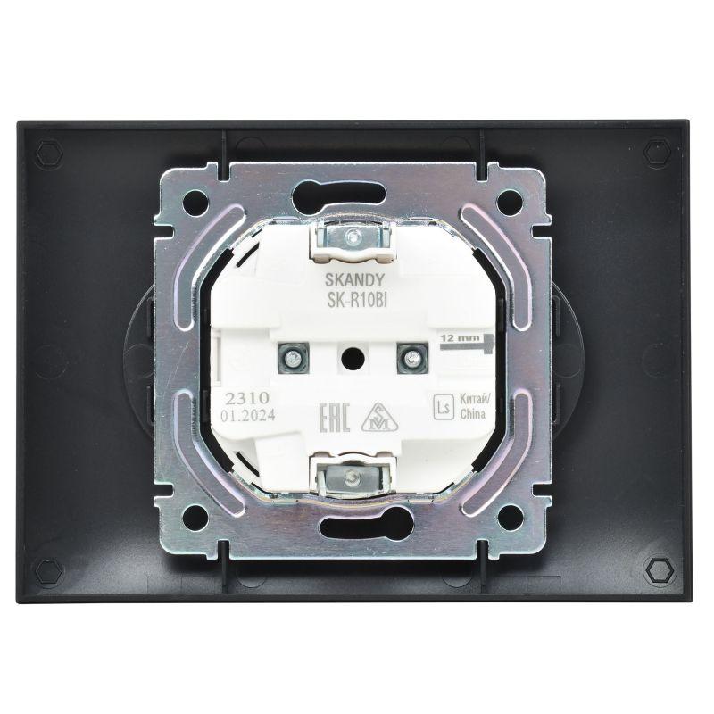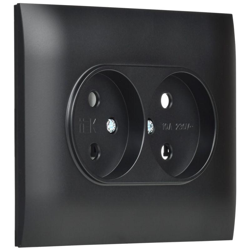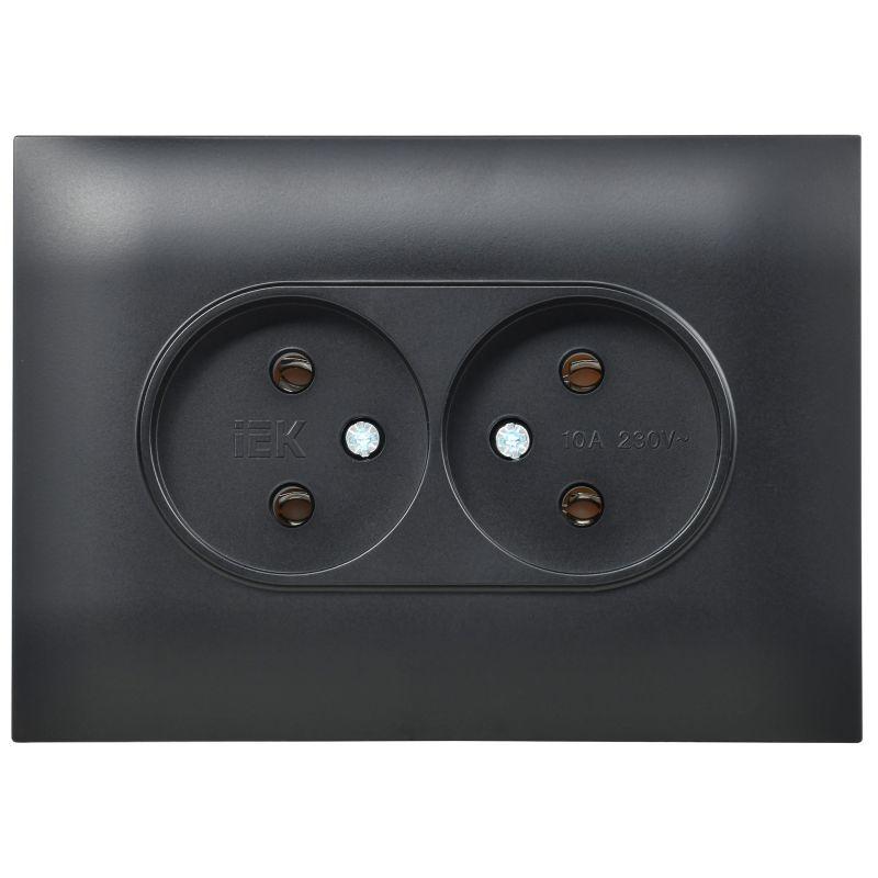 Розетка 2-м SKANDY 10А без заземл. без защ. шторок в сборе SK-R10Bl черн. IEK SK-R20-10-K02-F