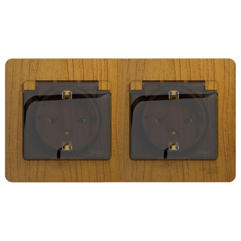 Розетка Systeme Electric (ранее Schneider Electric) серии Glossa (в сборе, цвет дерево дуб) двойная с заземлением, шторками и крышкой подходит для сетей 250 В, на ток 16 А. - Изделие со степенью защиты IP44 обеспечит безопасность использования в ванной и на кухне. - Заземляющий контакт обеспечивает дополнительную защиту от удара электрическим током. При наличии заземления электрический потенциал уходит в землю, защищая человека. - Выполнен из материала PС+ASA, стойкого к УФ-излучению и появлению царапин.
