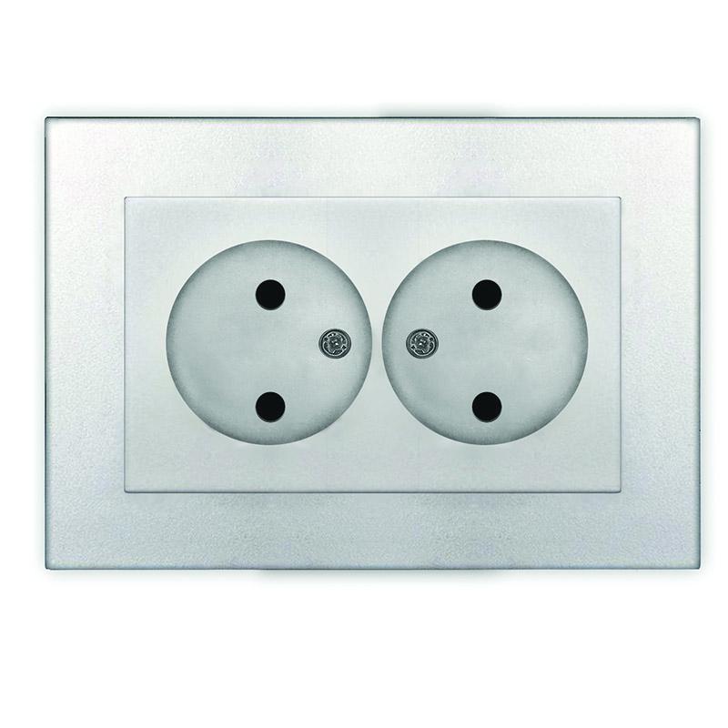 Розетка 2-м СП Афина 16А IP20 без заземл. в сборе серебр. Universal A0102-S