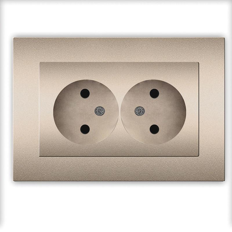 Розетка 2-м СП Афина 16А IP20 без заземл. в сборе шампань Universal A0102-Br