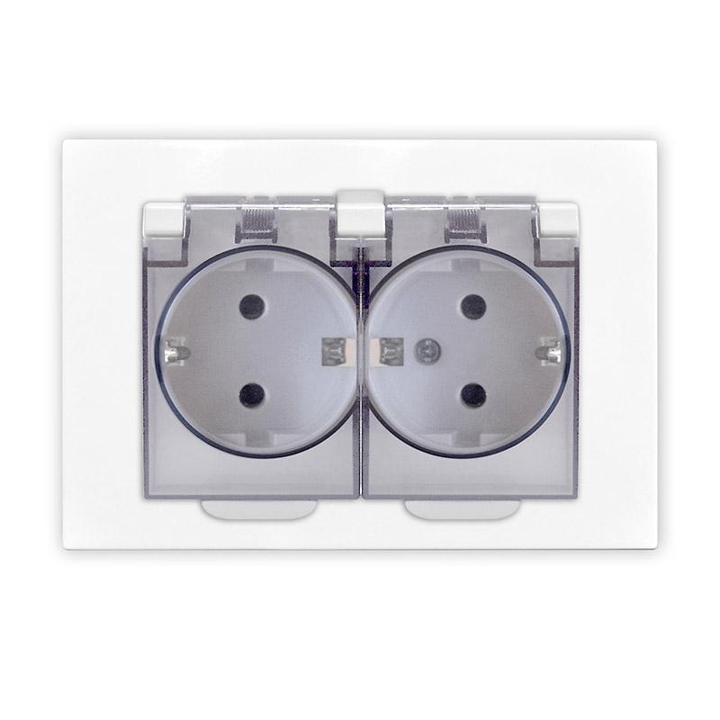 Розетка 2-м СП Афина 16А IP20 с заземл. c прозр. крышкой в сборе бел. Universal A0031