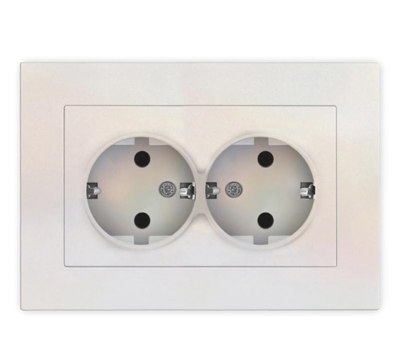 Розетка 2-м СП Афина 16А IP20 с заземл. в сборе жемчуж. Universal A0128-OBr