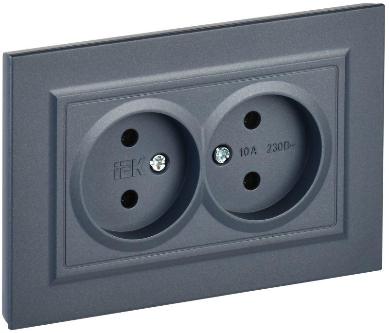 Розетка 2-м СП BRITE РС12-2-БрМ 10А в сборе без заземл. без защ. шторок маренго IEK BR-R20-10-K35-F