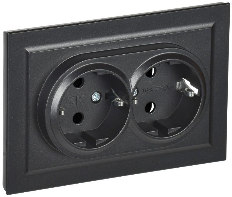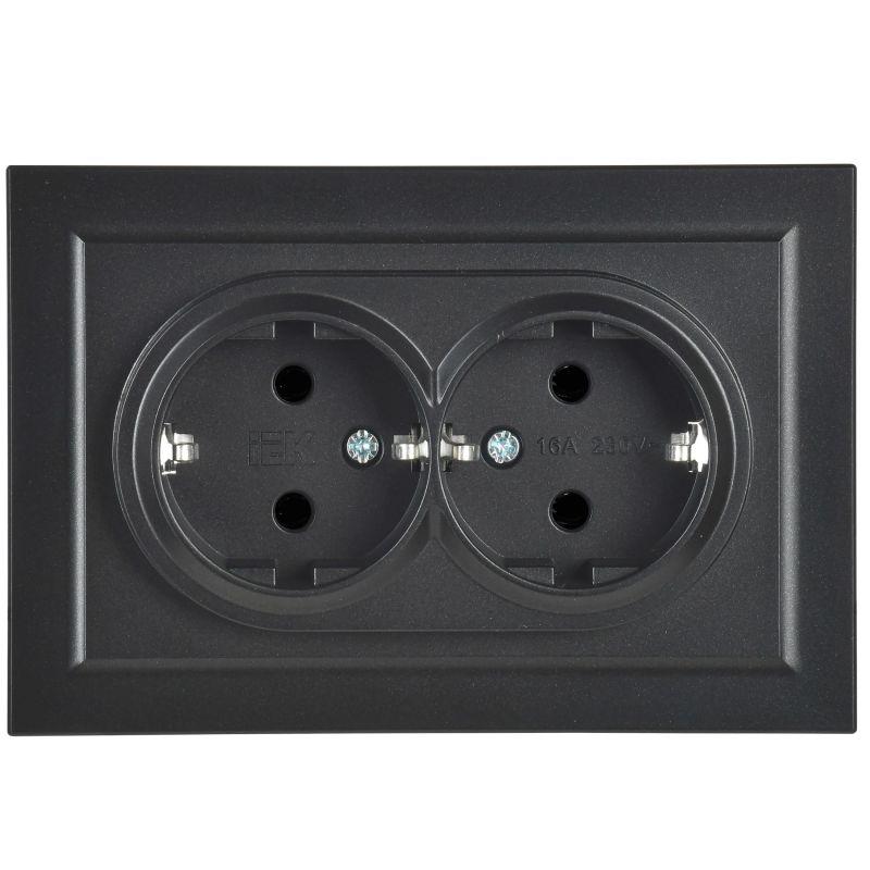 Розетка 2-м СП BRITE РС12-3-БрЧ 16А в сборе с заземл. без защ. шторок черн. IEK BR-R21-16-K02-F