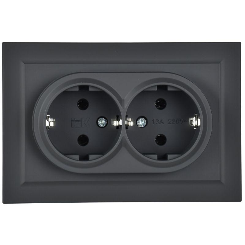 Розетка 2-м СП BRITE РС12-3-БрГ 16А в сборе с заземл. без защ. шторок графит IEK BR-R21-16-K53-F