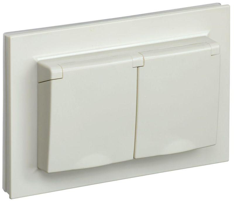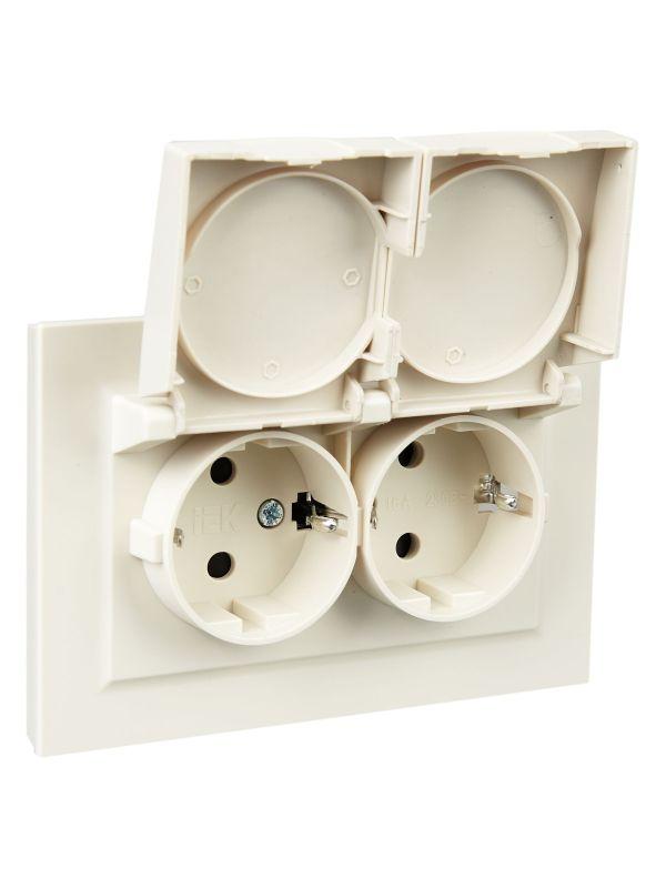 Розетка 2-м СП BRITE РСбш12-3-44-БрКр 16А в сборе IP44 с крышкой беж. IEK BR-R26-16-44-K10-F