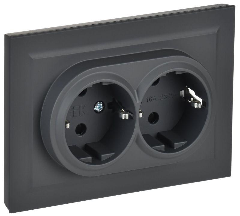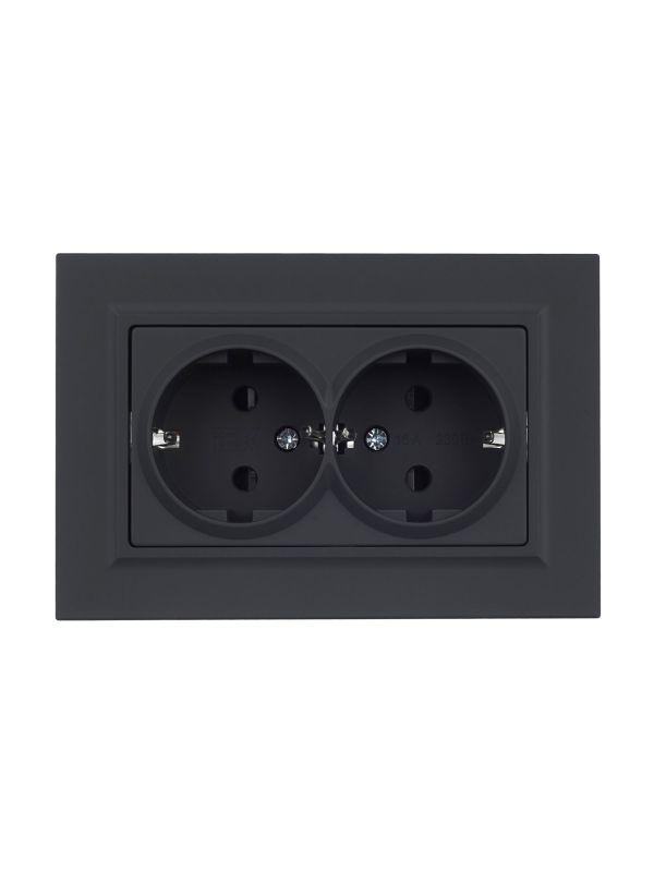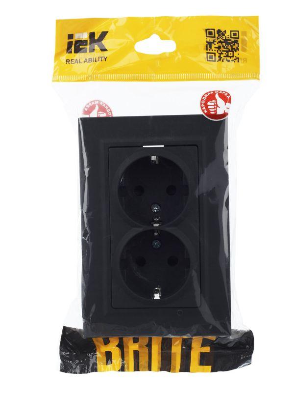 Розетка 2-м СП BRITE РСш12-3-БрГ 16А в сборе с заземл. защ. шторки графит IEK BR-R24-16-K53-F