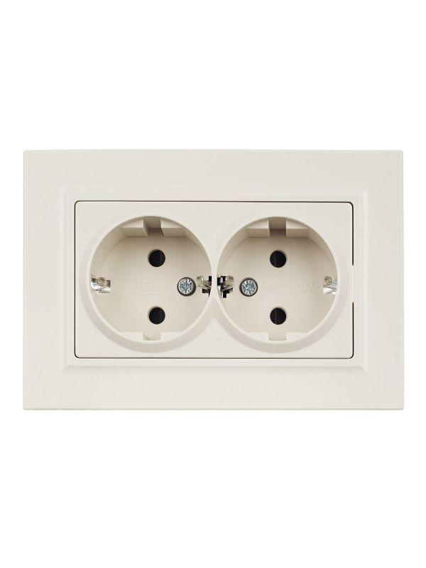 Розетка 2-м СП BRITE РСш12-3-БрКр 16А в сборе с заземл. защ. шторки беж. IEK BR-R24-16-K10-F