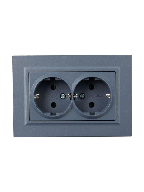 Розетка 2-м СП BRITE РСш12-3-БрМ 16А в сборе с заземл. защ. шторки маренго IEK BR-R24-16-K35-F