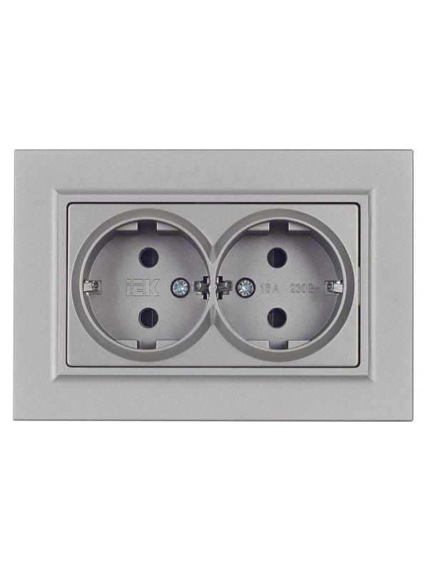 Розетка 2-м СП BRITE РСш12-3-БрС 16А в сборе с заземл. защ. шторки сталь IEK BR-R24-16-K46-F