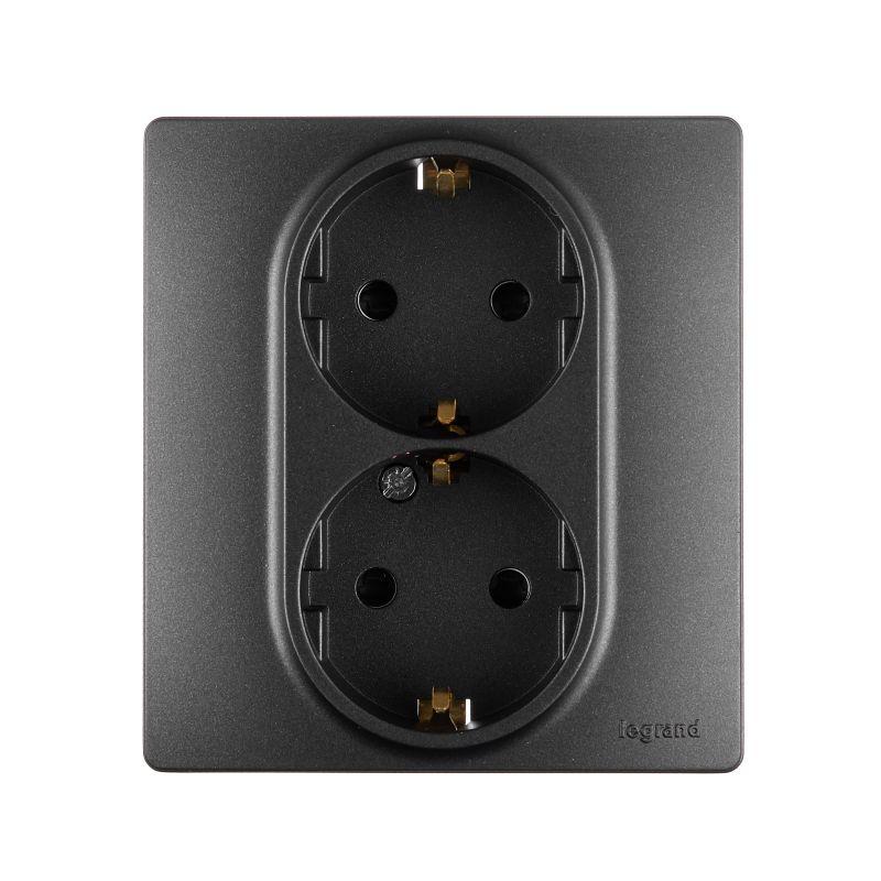 Двойная розетка с заземлением Legrand Etika, для скрытого монтажа,цвет антрацит. Максимальный ток 16 А, максимальная мощность 3680 Вт. Применяется в зданиях, оборудованных для повышения безопасности проводкой с заземлением (с защитным проводником).Позволяет компактно разместить две розетки, используя одно место установки.Шторки осуществляют защитную функцию путём ограничения доступа к токоведущим контактам. Доступ открывается только при подключении вилки. Особенности: - Шторки для защиты от детей интегрированы в механизм и не затрудняют подключение и извлечение вилки. - Все токоведущие части розетки имеют защиту от случайного прикосновения. - Контактная группа изготовлена из латуни CuZn37, имеет высокую степень упругости и сохраняет плотный контакт с вилкой, при длительной эксплуатации. - Скоба заземления имеет особый профиль для большей прочности. - Быстрое подключение благодаря безвинтовым зажимам - Лицевая панель крепится винтом. Изготовлена из прочного глянцевого поликарбоната, стойкого к механическим воздействиям, выгоранию и загрязнениям. Особенности серии Etika: - Корпус механизма- высококачественный поликарбонат, не проводит электрический ток, не поддерживает горение. - Специальный профиль внешнего контура механизма обеспечивает простоту и безошибочность многопостового монтажа. - Острые крепёжные лапки с широким углом раскрытия, обеспечивают надёжную фиксацию в монтажной коробке
