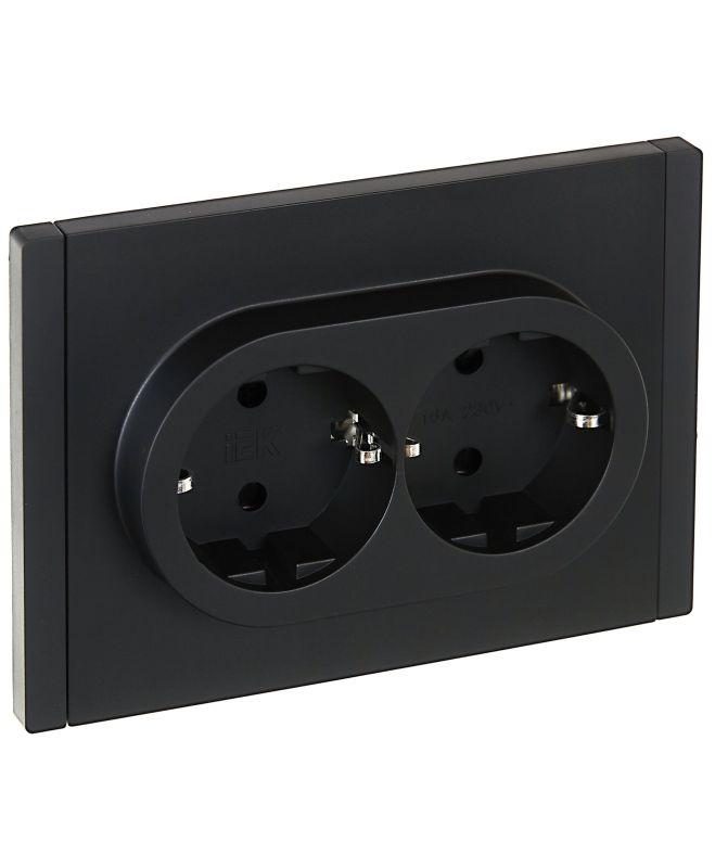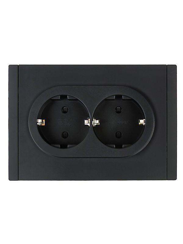 Розетка 2-м СП FORTE&PIANO FP123 16А с заземл. защ. шторки безвинт. крепл. черн. IEK FP-R24-16-1-K02