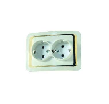Розетка 2-м СП Mimoza 16А IP20 с заземл. бел./зол. Makel 12282