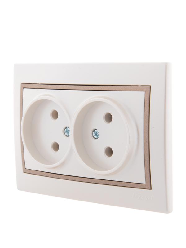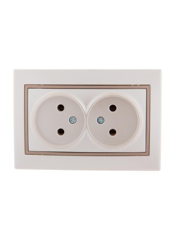 Розетка 2-м СП Mira 16А IP20 без заземл. со вставкой керамика свет. корич./жемчуж./бел. перламутр. LEZARD 701-3031-128