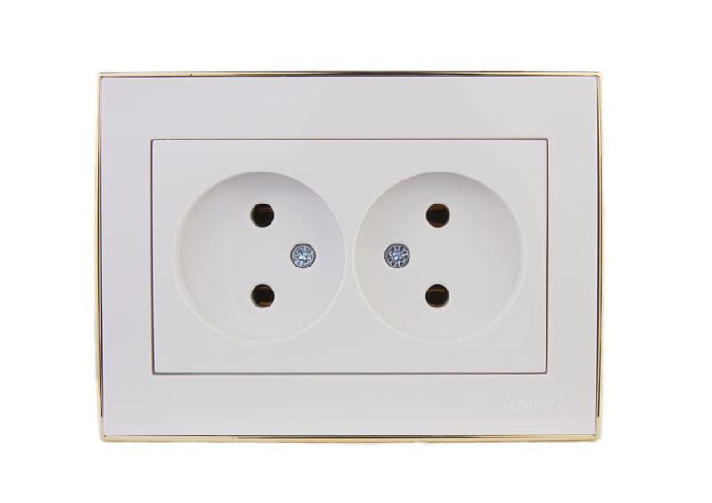 Розетка 2-м СП Rain 16А IP20 без заземл. с зол. боковой вставкой керамика бел. LEZARD 703-0226-128
