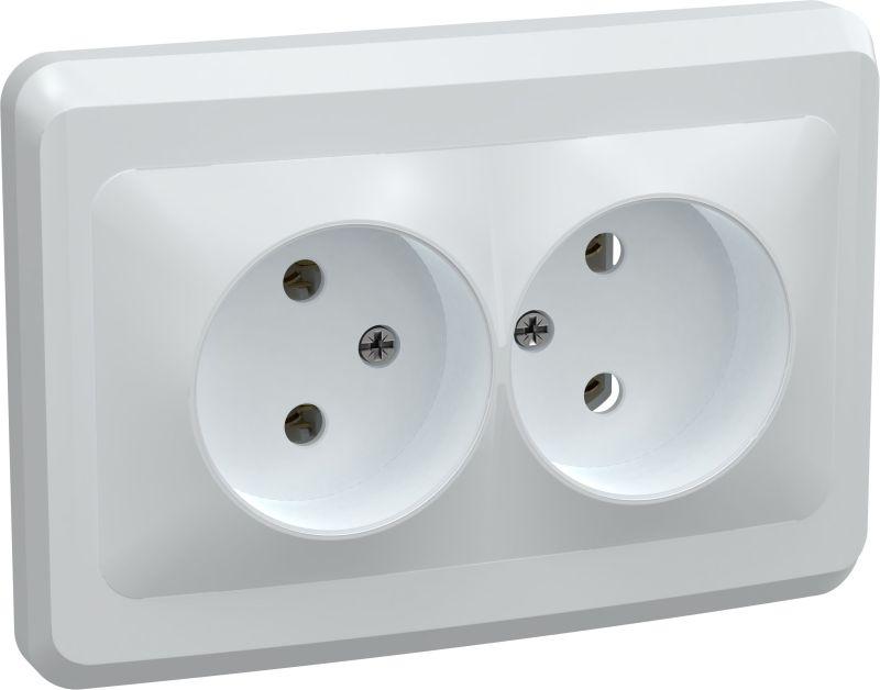 Розетка 2-м СП Вега РС12-2-ВБ без заземл. контакта без защ. штор 10А бел. IEK ERV20-K01-10-DM