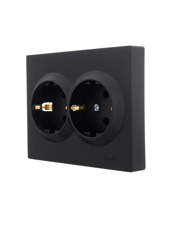 Розетка 2-м СП VESNA с заземл. ПБТ черн. бархат LEZARD 742-4200-127B