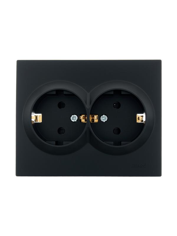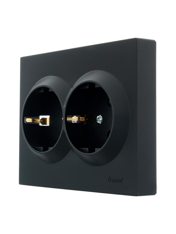 Розетка 2-м СП VESNA с заземл. со шторками ПБТ черн. бархат LEZARD 742-4200-178B