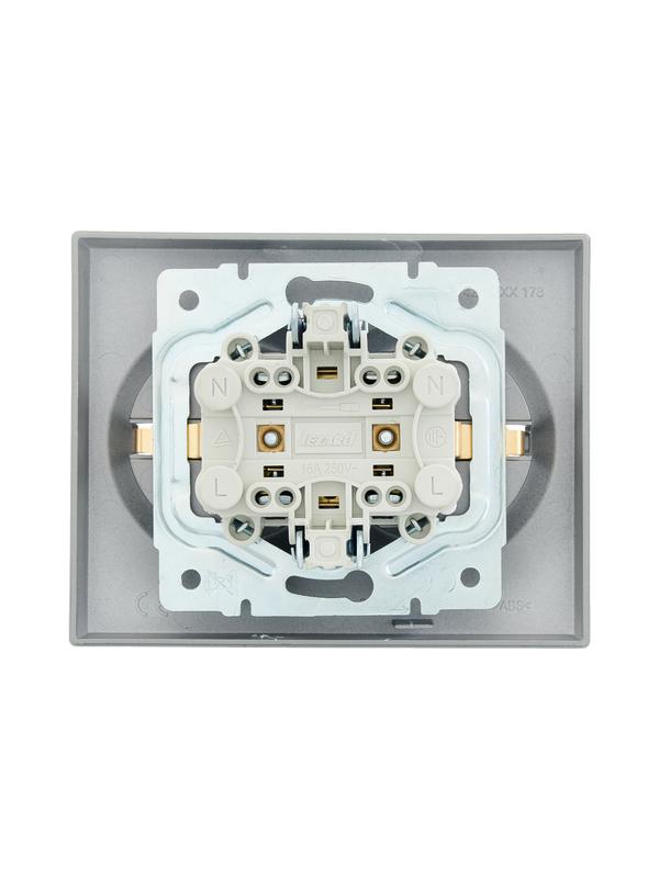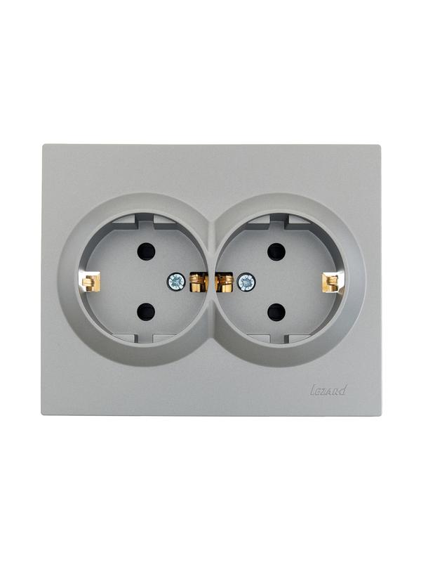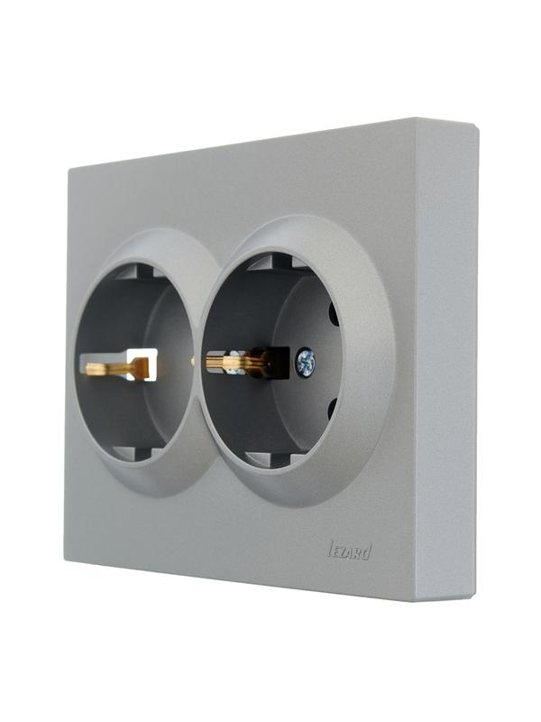 Розетка 2-м СП VESNA с заземл. со шторками ПБТ платина LEZARD 742-3500-178B