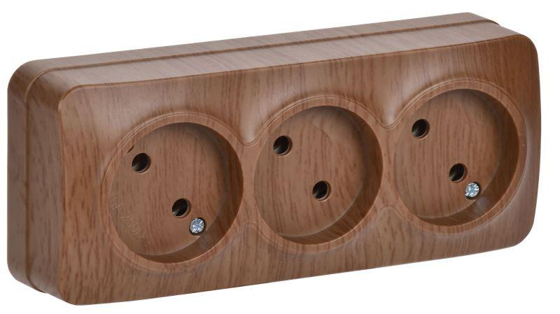 Розетка 3-м ОП GLORY РС23-2-ХД 10А без заземл. дуб IEK ERH30-K24-10