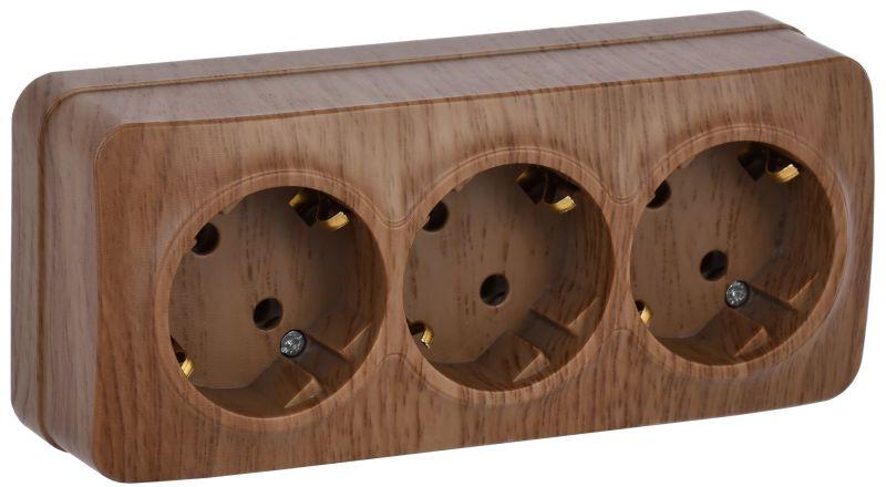Розетка 3-м ОП GLORY РС23-3-ХД 16А с заземл. дуб IEK ERH31-K24-16