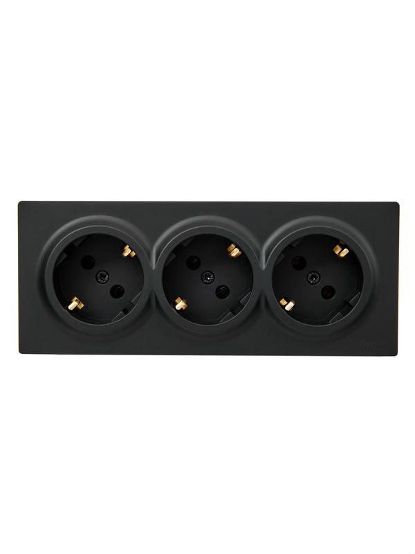 Розетка 3-мест. с заземл. LETO закрытый корпус ПБТ черн. бархат LEZARD 752-4200-127BUP